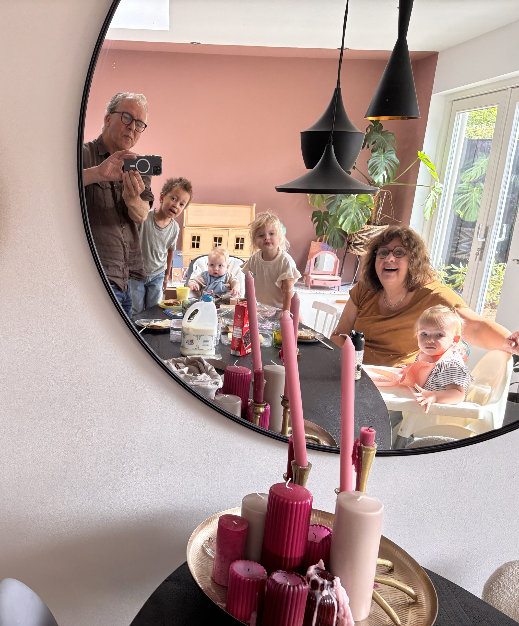 Het begin van de spiegelfotoreeks ontstond min of meer toevallig. Gedurende de jaren werd het een vast item als er gefotografeerd werd. Met de kinderen op vakantie werd ik er door hen zelfs op gewezen. De reeks zet zich nog steeds voort.